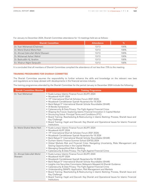 The training programmes attended by the Shariah Committee for the period January to December 2024 include the following: