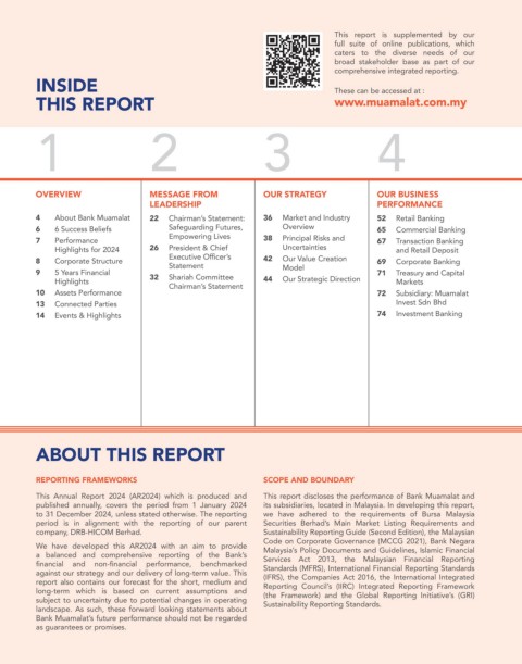 This  Annual  Report  2024  (AR2024)  which  is  produced  and   This report discloses the performance of Bank Muamalat and