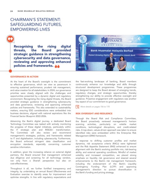 Advancing the Bank’s digital journey, a dedicated Board the Board proactively reviewed management’s horizon
