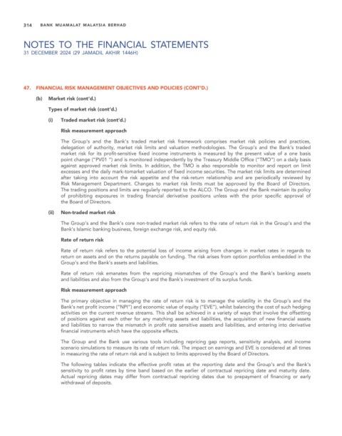 The Group’s and the Bank’s core non-traded market risk refers to the rate of return risk in the Group’s and the