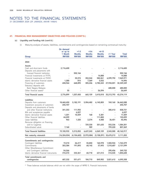(i) Maturity analysis of assets, liabilities, commitments and contingencies based on remaining contractual maturity: