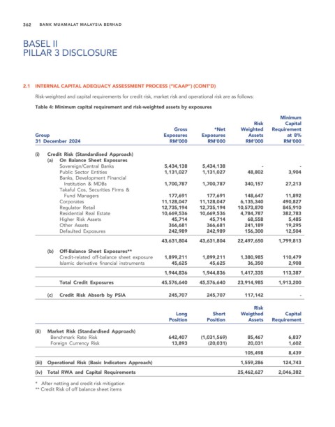 Table 4: Minimum capital requirement and risk-weighted assets by exposures