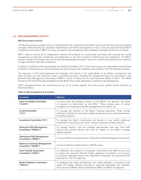 focuses on the overall business strategies and the Bank’s day-to-day operations in respect of risk management.