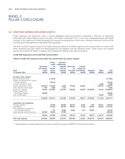 Table 8: Credit risk exposures and credit risk concentration by sector analysis