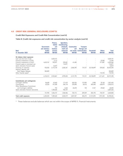 Table 8: Credit risk exposures and credit risk concentration by sector analysis (cont’d)