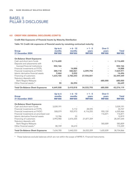 Table 10: Credit risk exposures of financial assets by remaining contractual maturity