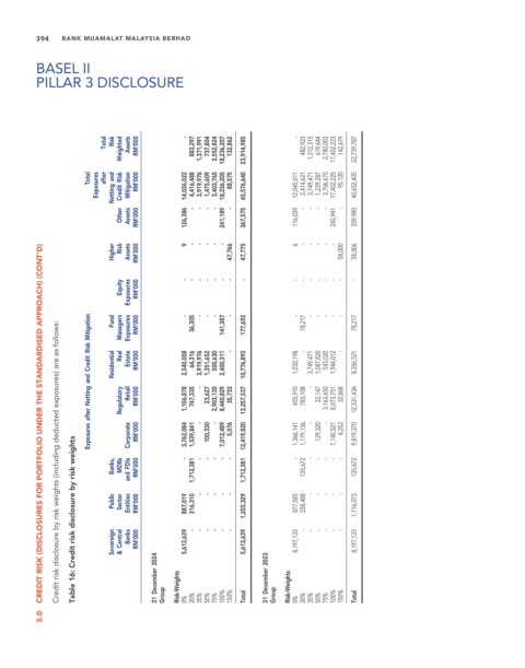 Credit risk disclosure by risk weights (including deducted exposures) are as follows: