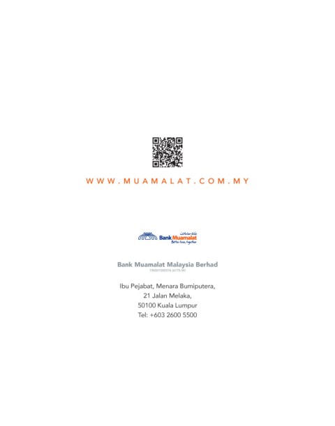 W W W . M U A M A L A T . C O M . M Y Bank Muamalat Malaysia Berhad 196501000376 (6175-W) Ibu Pejabat, Menara Bumiputera, 21 Jalan Melaka, 50100 Kuala Lumpur Tel: +603 2600 5500