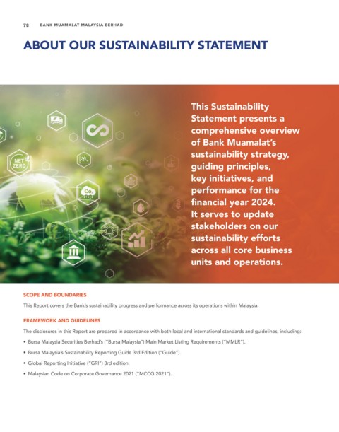 This Report covers the Bank’s sustainability progress and performance across its operations within Malaysia.