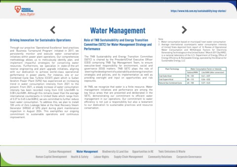 present. From 2021, a steady increase of water consumption At TNB, we recognize that water is a finite resource. Water