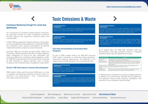 waste management to ensure the safe, responsible, and As part of TNB’s broader efforts, the TNB HSE Corporate