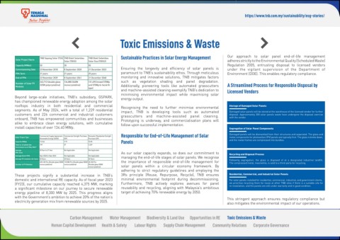 segments. As of May 2024, with a total of 1,229 residential impact, TNB is developing tools such as automated Damaged solar panels will be stored at the warehouse of the licensed vendor for further