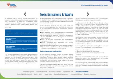 In alignment with our circular economy commitment, we By embracing these circular economy principles, TNB aims This pilot project will be operated by Grid System Operator