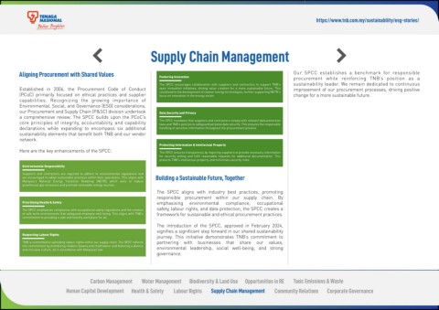 The SPCC encourages collaboration with suppliers and contractors to support TNB's sustainability leader. We remain dedicated to continuous